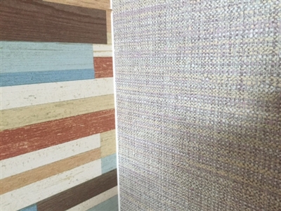 アクセントのカラフルな木目風のクロスも横貼りにしています。